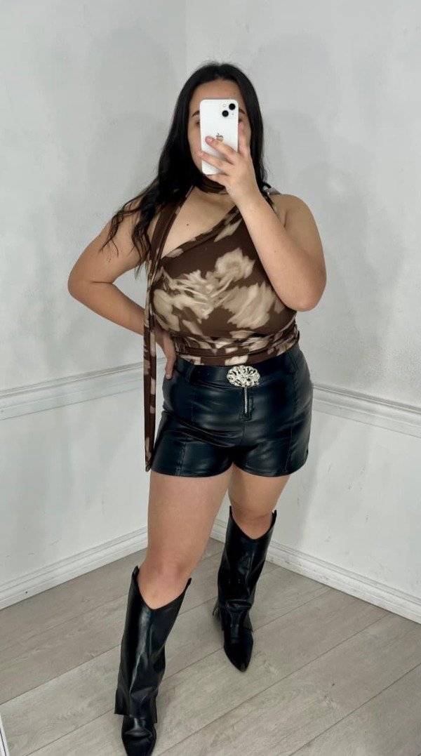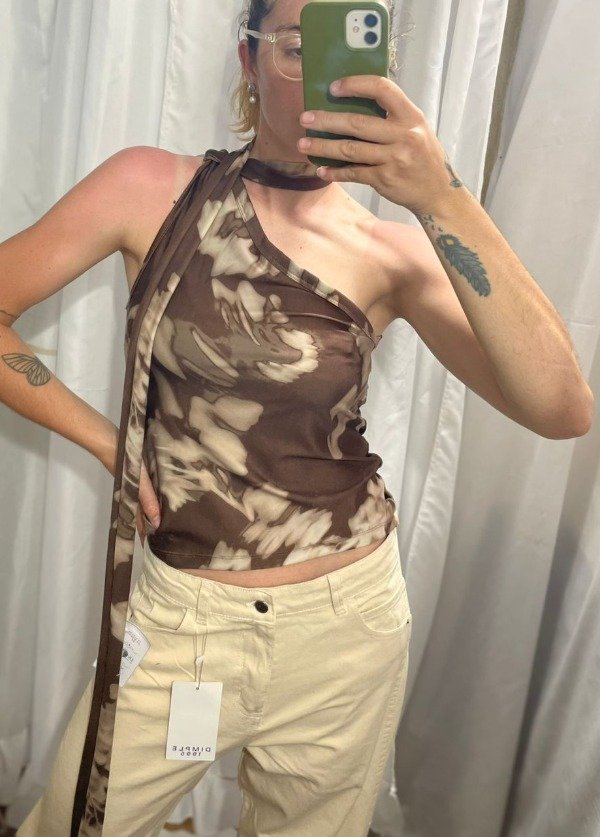 Top de un solo hombro largo con detalle de pañuelo en el cuello.