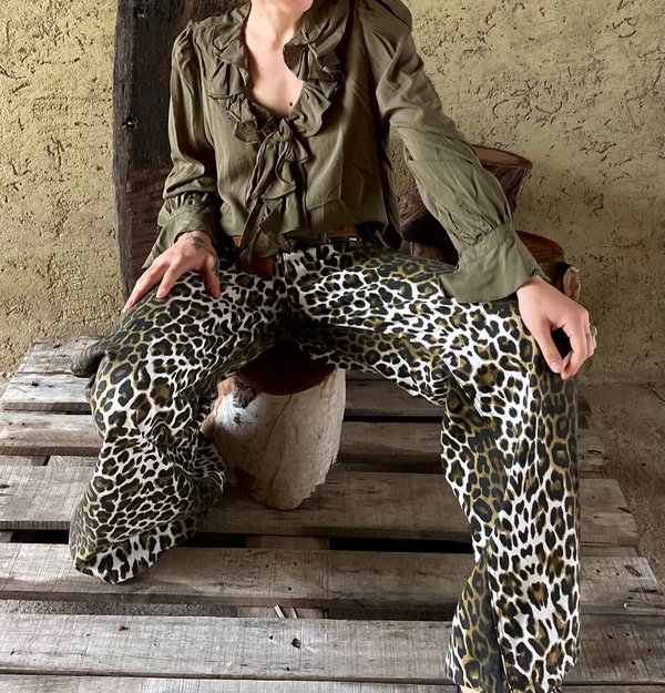Jeans wid leg extra ancho , en print
