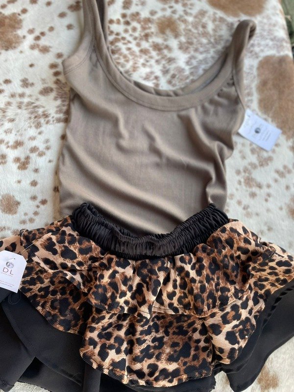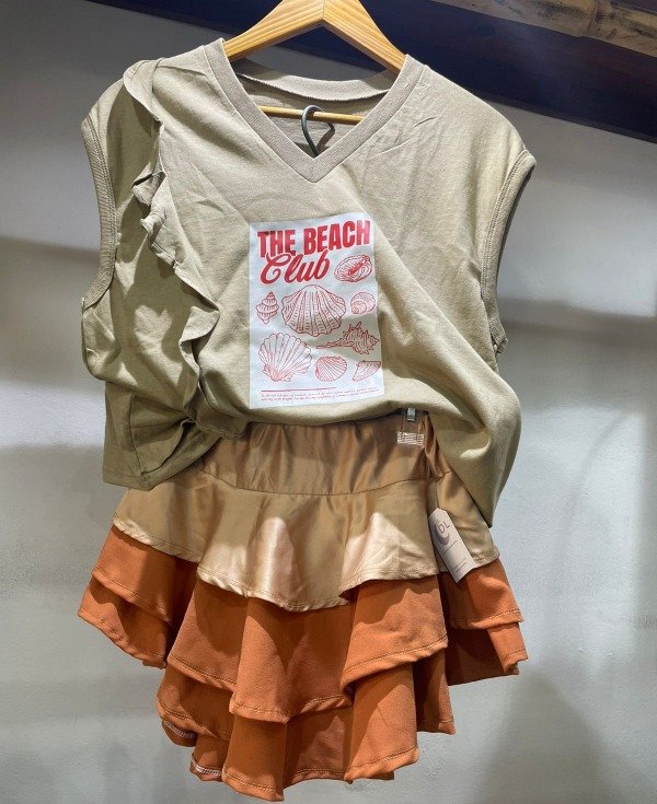 Short Pollera con vuelos, tiene elástico en la cintura.
